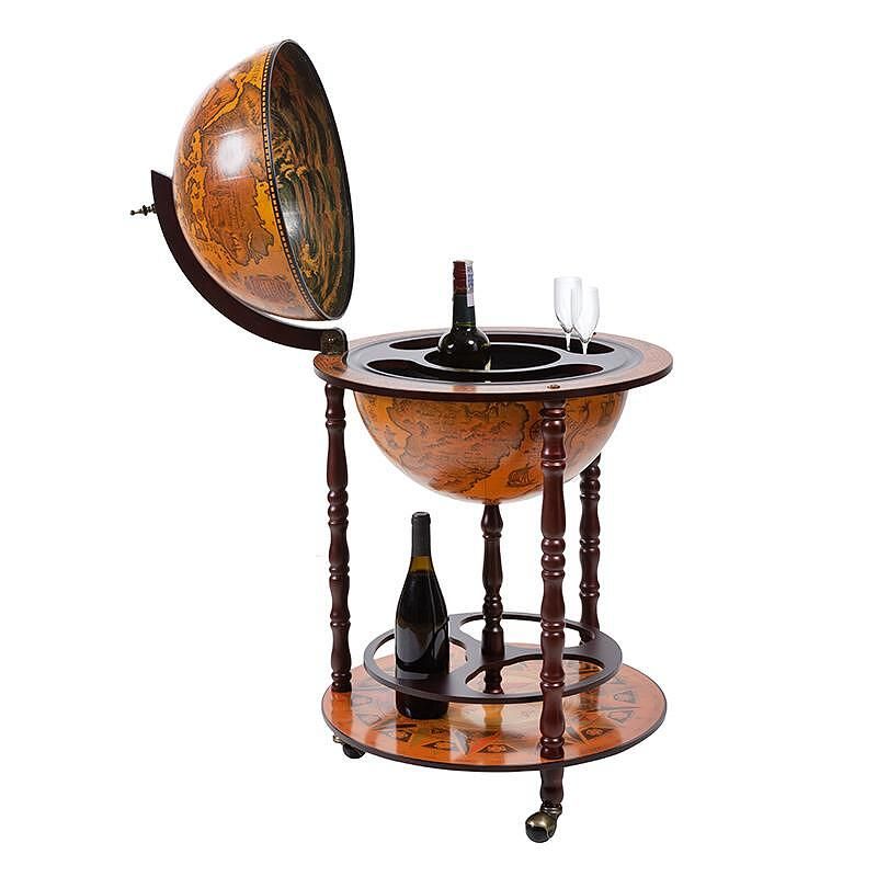 Глобус барът има две функции - като красив интериорен детайл и като мини бар за съхранение на бутилки.