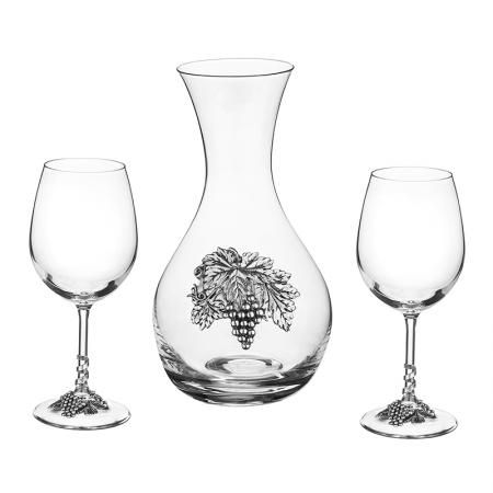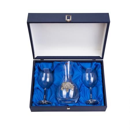 Елегантен сет за вино, състоящ се от декантер и 2 бр. чаши от кристално стъкло.