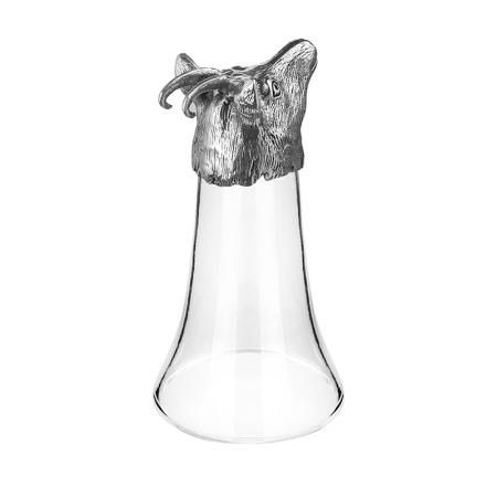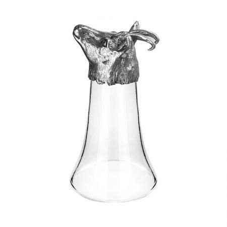 Чаша за аперитив/ракия/ от кристално стъкло с оригинална визия-глава на животно, изработена от сребро и калай.