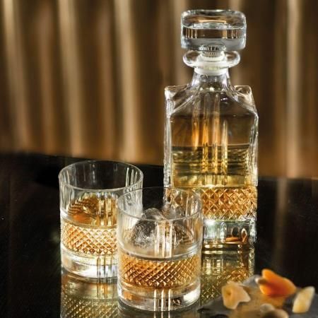 Стилен сервиз от 6 чаши за уиски с елегантна бутилка към тях, произведени от италианската фирма RCR Crystal. Комбинацията от красиво изработеното стъкло и изящна форма носи усещане за истинска наслада от вкуса на малцовата напитка.