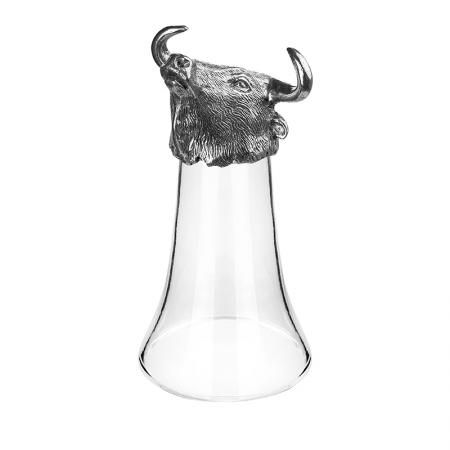 Чаша за вино от кристално стъкло с оригинална визия-глава на животно, изработена от сребро и калай.
