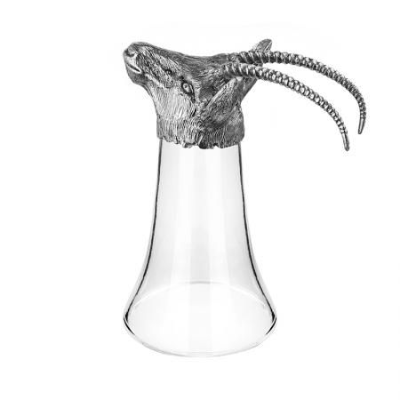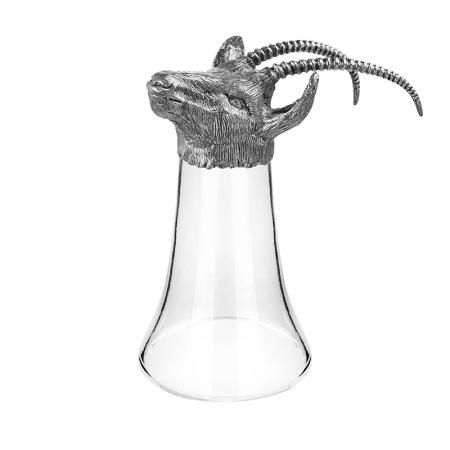 Чаша за вино от кристално стъкло с оригинална визия-глава на животно, изработена от сребро и калай.