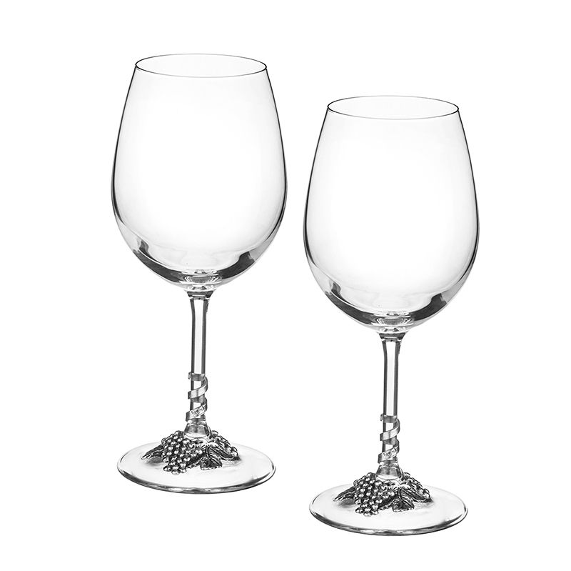 Декорацията от сплав от калай и сребро във формата на грозд украсява столчето на чашите.