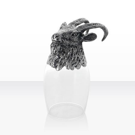 Чаша за аперитив/ракия/ от кристално стъкло с оригинална визия-глава на животно, изработена от сребро и калай.