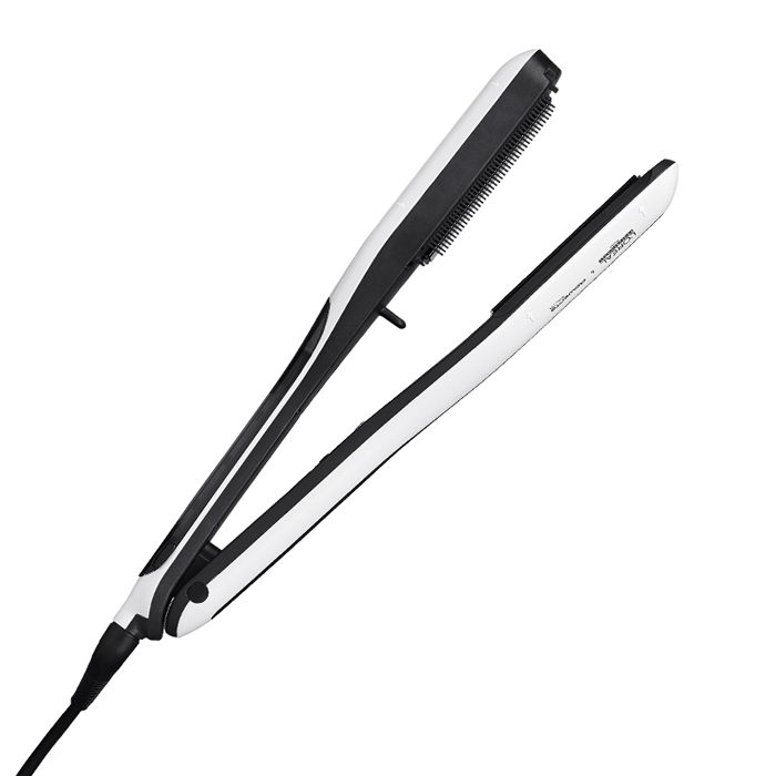 Интензивното отделяне на пара на тази уникална преса, съчетана с анодизирани устойчиви плочи, изправя и изглажда непокорната и трудна за стилизиране косата, като дълбоко я хидратира без да причинява щети от топлината.