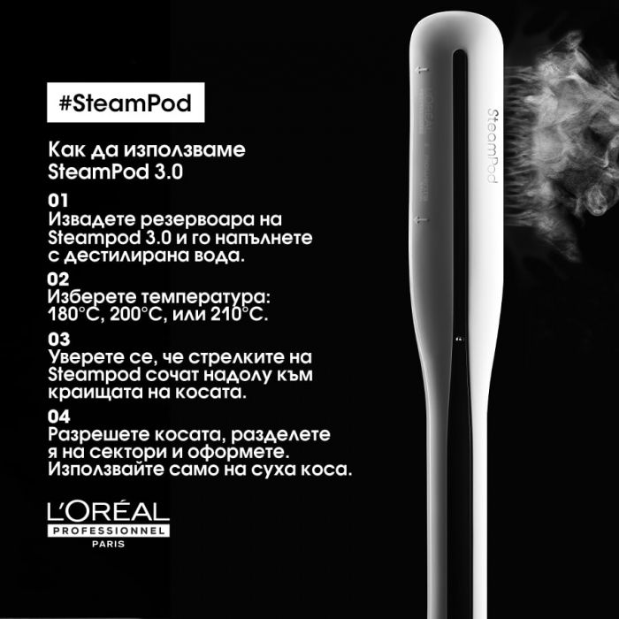 След успешното представяне на SteamPod 1.0 и SteamPod 2.0, L`Oreal Professionnel лансира дългоочаквания SteamPod 3.0. Съвместната работа с Rowenta Salon, SteamPod сега е по-ефикасен и по-ергономичен от всякога.