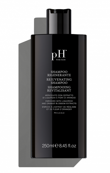 pH Rejuvenating Shampoo е регенериращ шампоан за превенция на косопада и подсилване на изтощената и слаба коса. Формулата прониква дълбоко от корена до сърцевината на косъма, почиства, стимулира и укрепва корените на косата. Деликатната текстура нормализира, хидратира и тонизира скалпа. Оставя косата с нежен завладяващ аромат на портокалови цветчета и дървесни нотки.