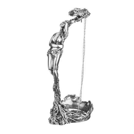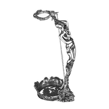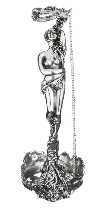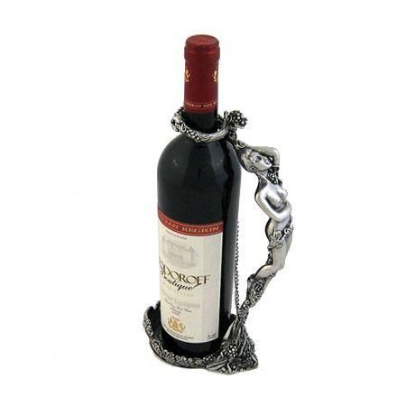 Ефектна метална стойка за бутилка вино, изработена от сплав от калай и сребро.