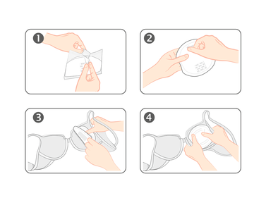 Преди употреба да се отстрани предпазното фолио на лепенките. Подплънките са индивидуално и хигиенично предпазени с фолио, което се отстранява преди употреба.