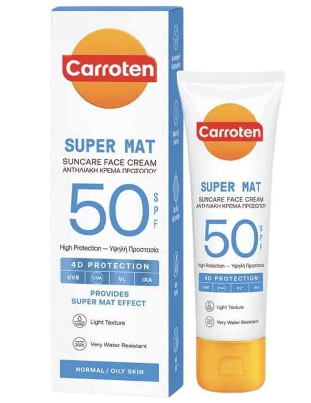 Carroten - Матиращ слънцезащитен крем за лице Super Mat SPF50. 50 ml