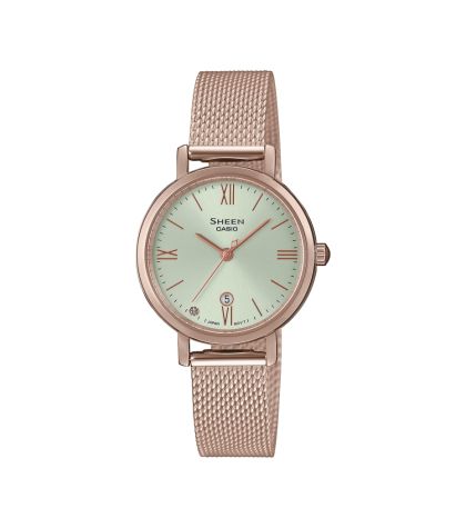 Този дамски часовник от Sheen серия притежава корпус от Масивна неръждаема стомана и верижка/каишка от Масивна неръждаема стомана.