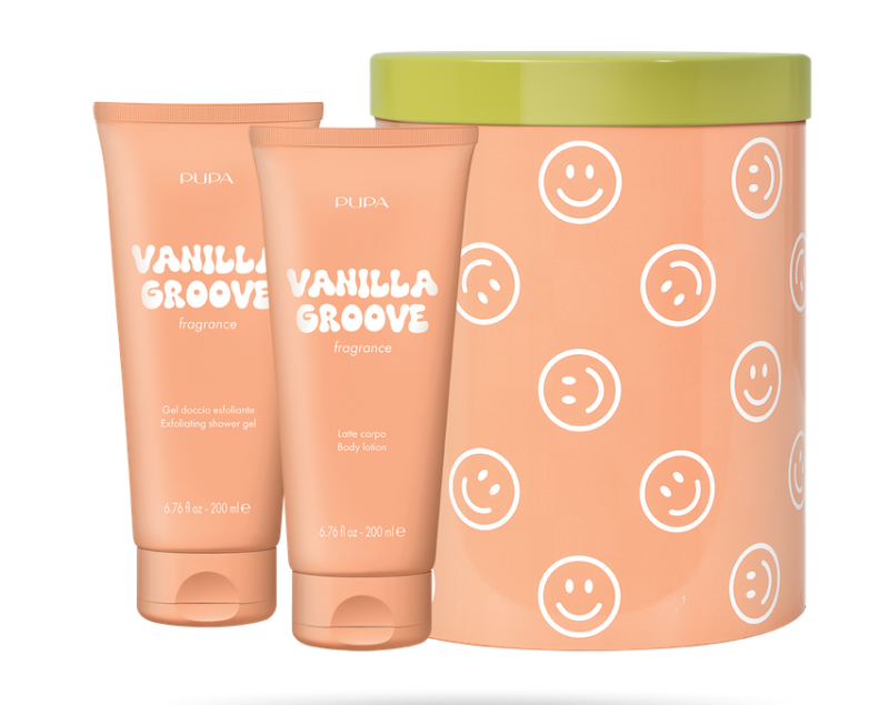 PUPA MILANO - HAPPY BOX KIT 2 / ЕКСФОЛИРАЩ ДУШ ГЕЛ + МЛЯКО ЗА ТЯЛО + МЕТАЛНА КУТИЯ/ 6 аромата. 200 & 200 ml