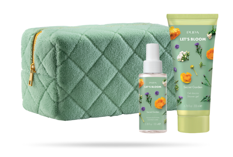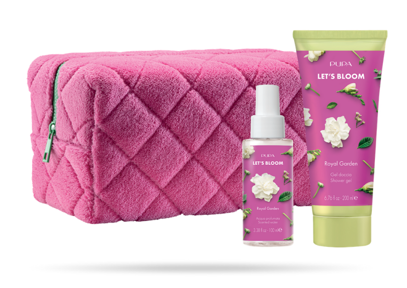 PUPA MILANO - LET`S BLOOM KIT 2 ДУШ ГЕЛ + АРОМАТИЗИРАНА ВОДА + НЕСЕСЕР / 4 аромата. 200 & 100
