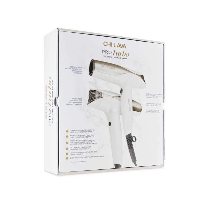 Вземете елегантния и мощен сешоар CHI LAVA PRO Turbo, проектиран да революционизира вашето стилизиране с авангардна технология и луксозен комфорт. Изработен е с нашата патентована технология CHI LAVA, използваща един от най-ефективните топлопроводими материали, познати на човечеството, този сешоар осигурява професионална производителност, която надминава очакванията.