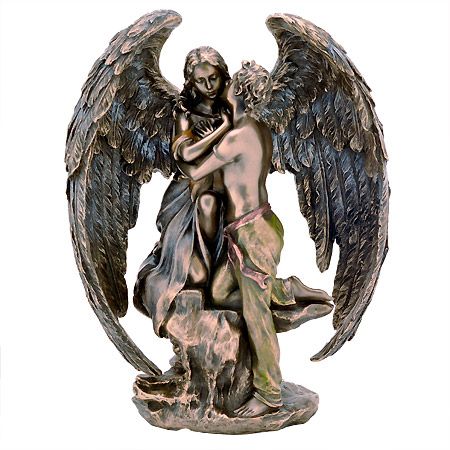 Полирезинова статуетка "Ангелска Прегръдка" е изящно произведение на изкуството, което улавя нежността и силата на любовта. Два ангела, обвити в криле, се сливат в прегръдка, символизираща вечната връзка и закрила. Тази статуетка е изработена с изключителна прецизност от полирезин, материал, който позволява детайлно пресъздаване на всеки елемент. Покритието от метал придава на фигурата античен вид и подчертава нейната красота.