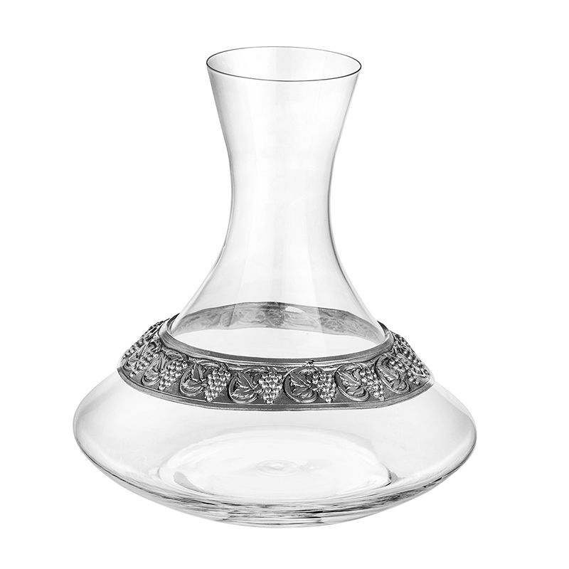 Декантер за вино от кристално стъкло с издължено гърло и широка, плоска основа, която способства по- бързото насищане с кислород на виното т.нар. аерацията на виното/ това е напитка, която „диша“.