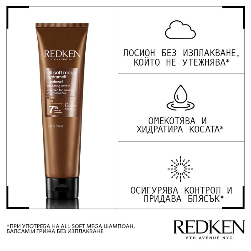 Redken All Soft Mega - Хидратиращ крем без изплакване за много суха коса. 150 ml